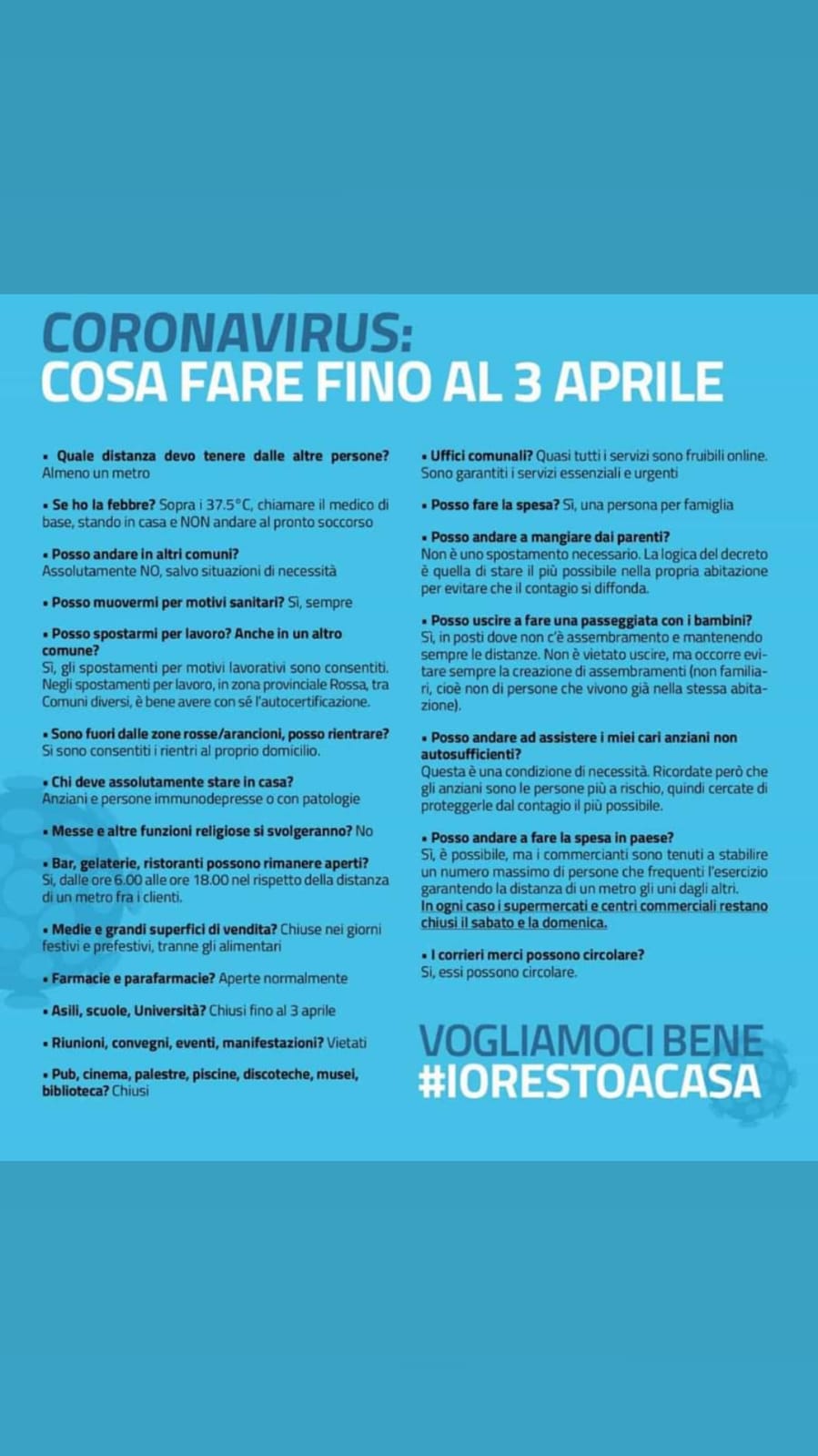 Un memorandum dei comportamenti da seguire responsabilmente per prevenire l'infezione da COVID-19.